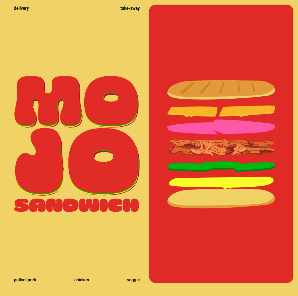 Mojo Sandwich is a pop-up restaurant a friend and I opened as a side project during summer 2024. I worked on the entire brand identity, both print and web.